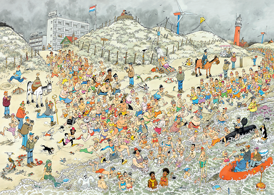 Jan van Haasteren tekent al decennia humoristische, kleurrijke platen met veel detail. De doorgewinterde fan zoekt in elke puzzel direct naar de haaienvin, het handelsmerk van Jan. Maar er zijn meer kenmerken o.a. Sinterklaas, de handjes, het kunstgebit en Jan’s zelfportret kom je ook bijna altijd tegen. In de Jumbo collectie vind je tientallen Jan van Haasteren puzzels van 150 tot 5.000 stukjes. Heel veel puzzelplezier!