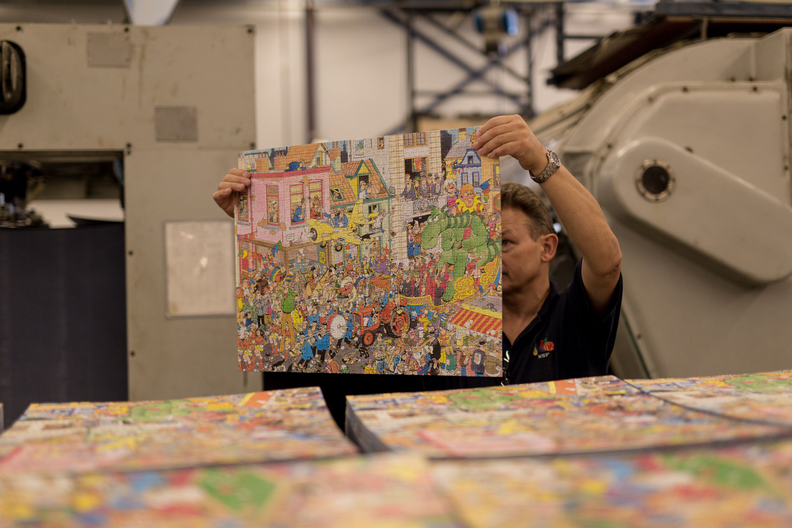 You can also watch the episode of Het Klokhuis from 2026, which shows how Jan van Haasteren puzzles are produced. The basic production process of the puzzle itself has remained largely the same over the years. However, innovative developments have influenced how the packaging is made. For a good look at the current sustainable production process, watch the NSF video as well.